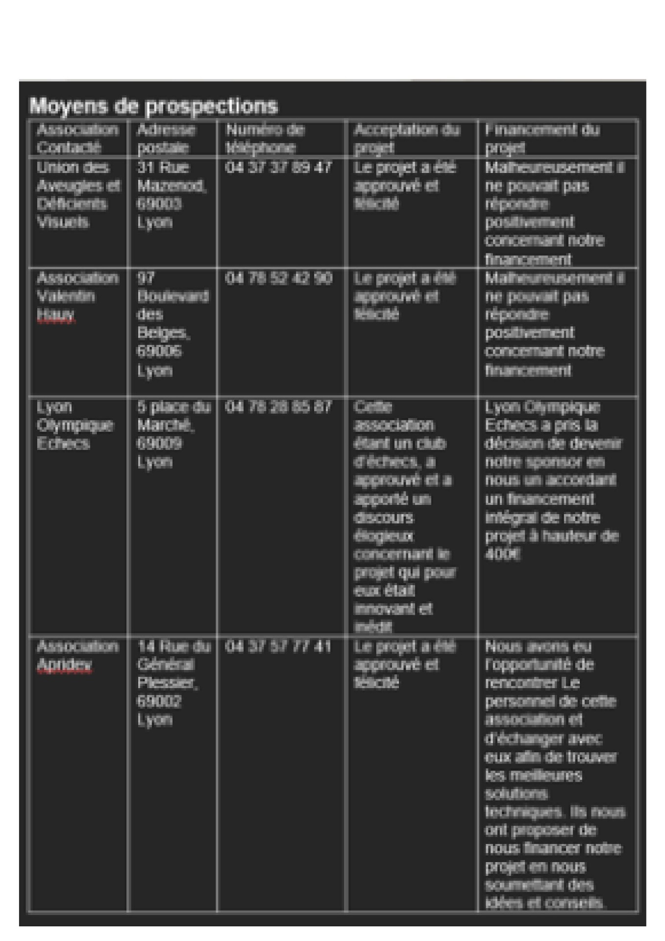 J'ai créé une fiche de prospection pour rechercher des sponsors, et j'ai également utilisé différents supports de communication pour promouvoir mon projet comme Instagram et Linkedin.